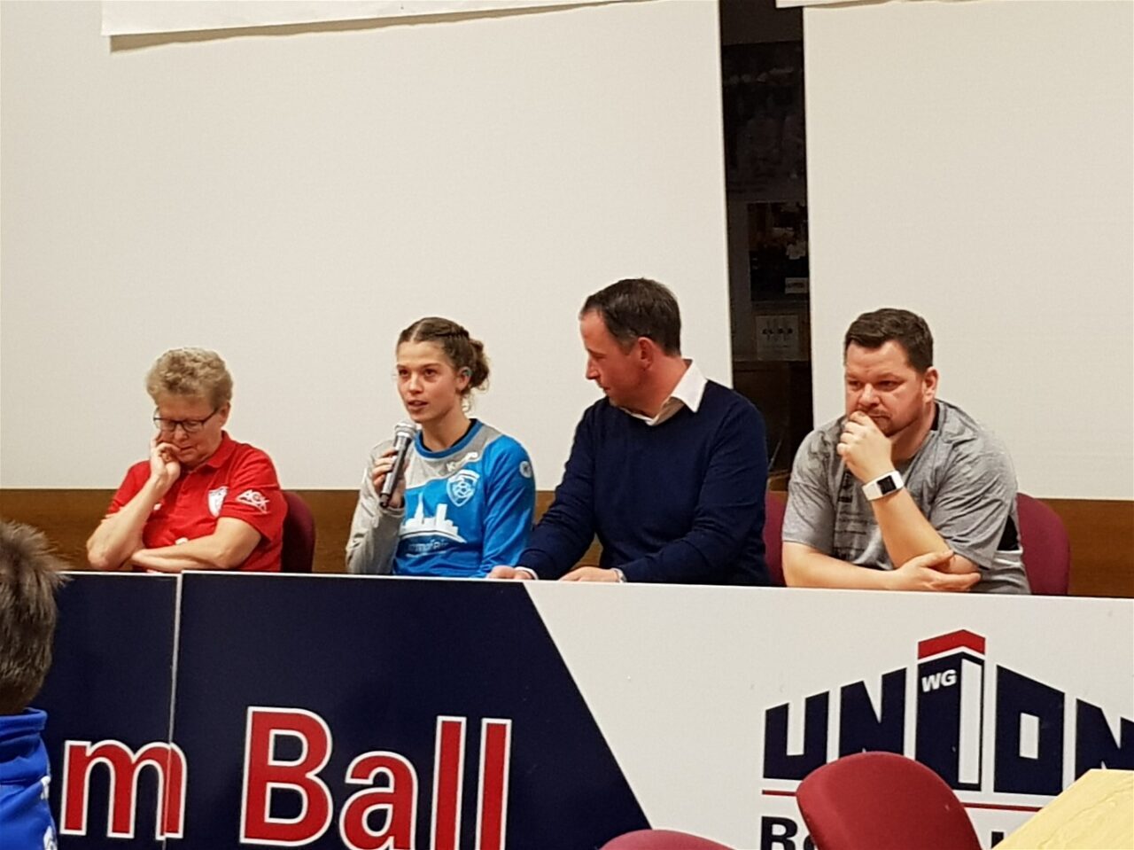 „Ich denke, dass wir heute verdient gewonnen haben- auch wenn die Höhe des Sieges dem Spielverlauf nicht richtig widerspiegelt. Wir haben in der ersten Halbzeit bei unseren Abschlüssen zu oft die falsche Entscheidung getroffen. Das haben wir im zweiten Durchgang deutlich besser gemacht. Mit jedem Tor und dem wachsenden Vorsprung kam das Selbstvertrauen“, lautete das Fazit von Ute Lemmel nach dem Schlusspfiff. Steffen Franke auf Schweriner Seite gratulierte Lemmel und ihrer Mannschaft zum Sieg. „Rostock war die bessere Mannschaft und hatte die höhere Qualität. Ich meine das nicht auf jede Einzelspielerin bezogen, sondern auf die mannschaftliche Geschlossenheit. Wir haben die taktische Disziplin vermissen lassen“, so Frankes Analyse. „Ich habe in der Halbzeit gesagt, dass die Phase nach dem Wiederanpfiff entscheidend sein wird. Rostock wird nicht über 60 Minuten das Handballspielen einstellen. Aber wenn Du dann drei, vier Bälle hintereinander wegwirfst, musst Du auch mal das Tempo rausnehmen.“