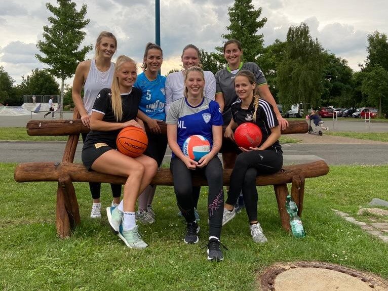 Ihren ersten gemeinsamen Auftritt hatte dann ein Teil des Teams am Freitagnachmittag in Rostock Schmarl. Mit sechs Feldspielerinnen und einer Torhüterin war die Mannschaft dabei durchaus für ihr eigenes Spielgerät ausreichend besetzt, aber der Ball wurde dann doch etwas größer, waren die Damen doch an diesem Tag mit Basketball, Beachvolleyball und Fußball beschäftigt. Zum Abschluss des Nachmittags gab es dann noch ein gemeinsames Grillen.