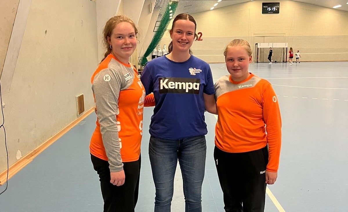 Rostock Zum Schluss ließ sie sich mit „ihren“ beiden Torhüterinnen fotografieren. Juniorteam-Torfrau Lucy Schelske ist auch als Torwarttrainerin der C-Jugend aktiv und war durchaus angetan von den Leistungen ihrer Schützlinge Frieda Fink und Vanessa Knopf beim Rostocker Handball Cup: „Ich bin mit beiden Mädchen, mit denen ich seit einem halben Jahr arbeite, sehr zufrieden“, so die 18-jährige, die das Handball-ABC bei Frankfurter HC erlernt hat, aber bereits seit mehreren Jahren in der Hansestadt heimisch geworden ist.