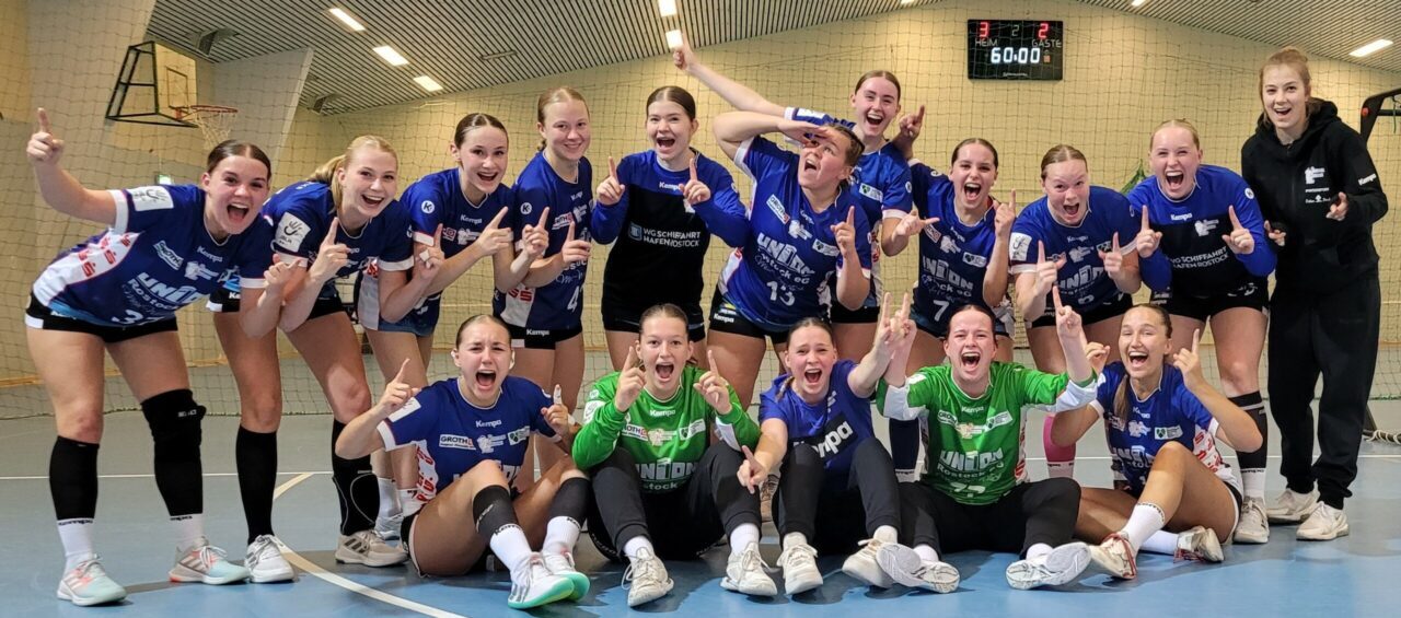 Rostock Es sind noch 8 Sekunden auf der Uhr. Torhüterin Lucy Schelske hatte gerade wieder einen Gegentreffer verhindert, auf der Anzeigetafel steht ein 29:29 und Marc Hünerbein nimmt seine letzte Auszeit. Genau 8 Sekunden bleiben seinem jungen Team noch, um die große Überraschung zu schaffen. Als der Ball freigegeben wird, gibt es zwei Pässe. Dann hat Leonie Kaden den Ball, setzt sich durch und trifft. Die Schlusssirene geht im Jubel unter.