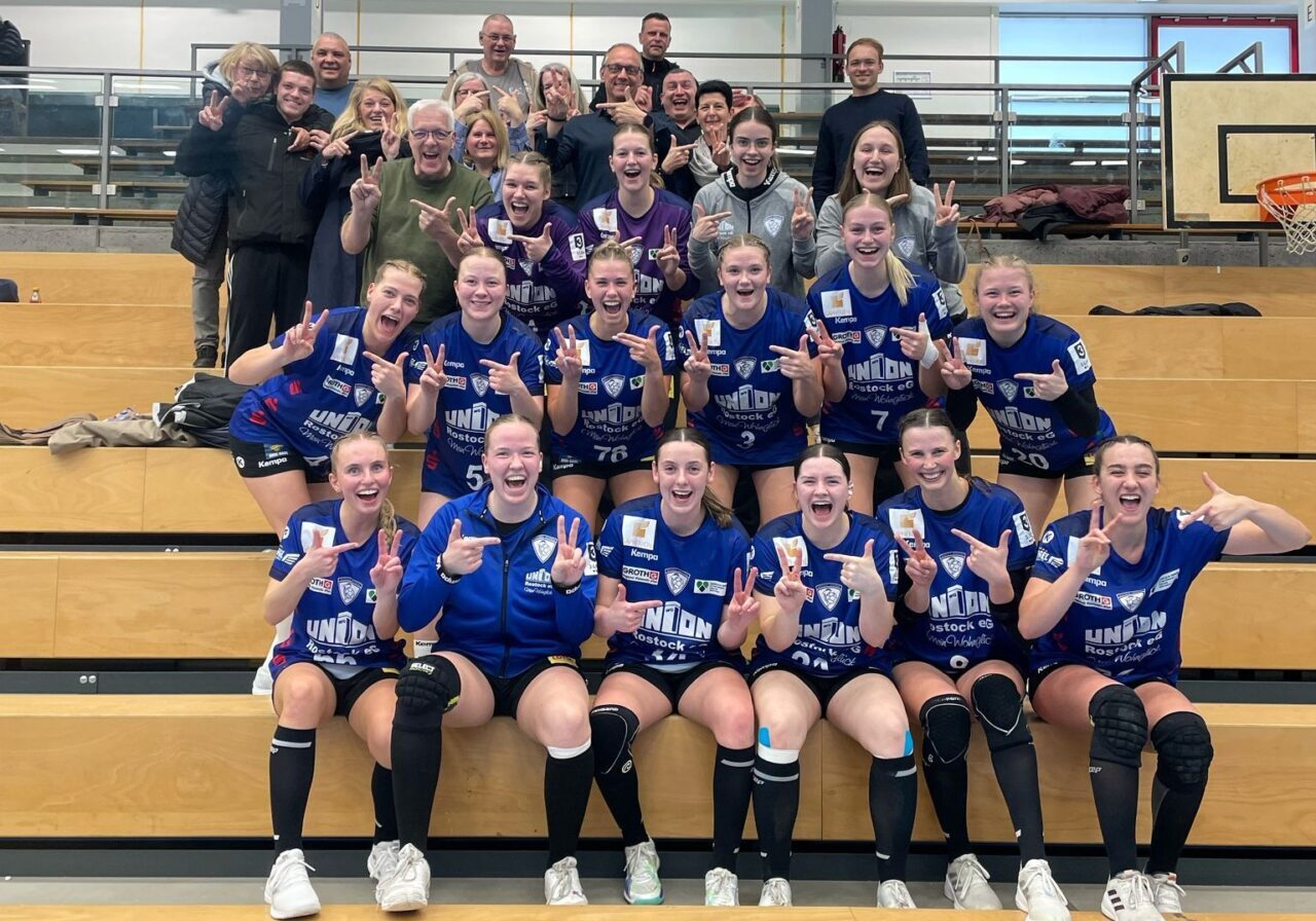 Altenholz Am Ende gab es dann ein Gruppenfoto mit den mitgereisten Fans. Durch einen jederzeit verdienten 34:28-Erfolg beim TSV Altenholz haben sich die Damen des Rostocker HC fünf Spieltage vor dem Saisonende sportlich zum dritten Mal in Folge die Teilnahme an der Aufstiegsrunde zur zweiten Bundesliga gesichert.
